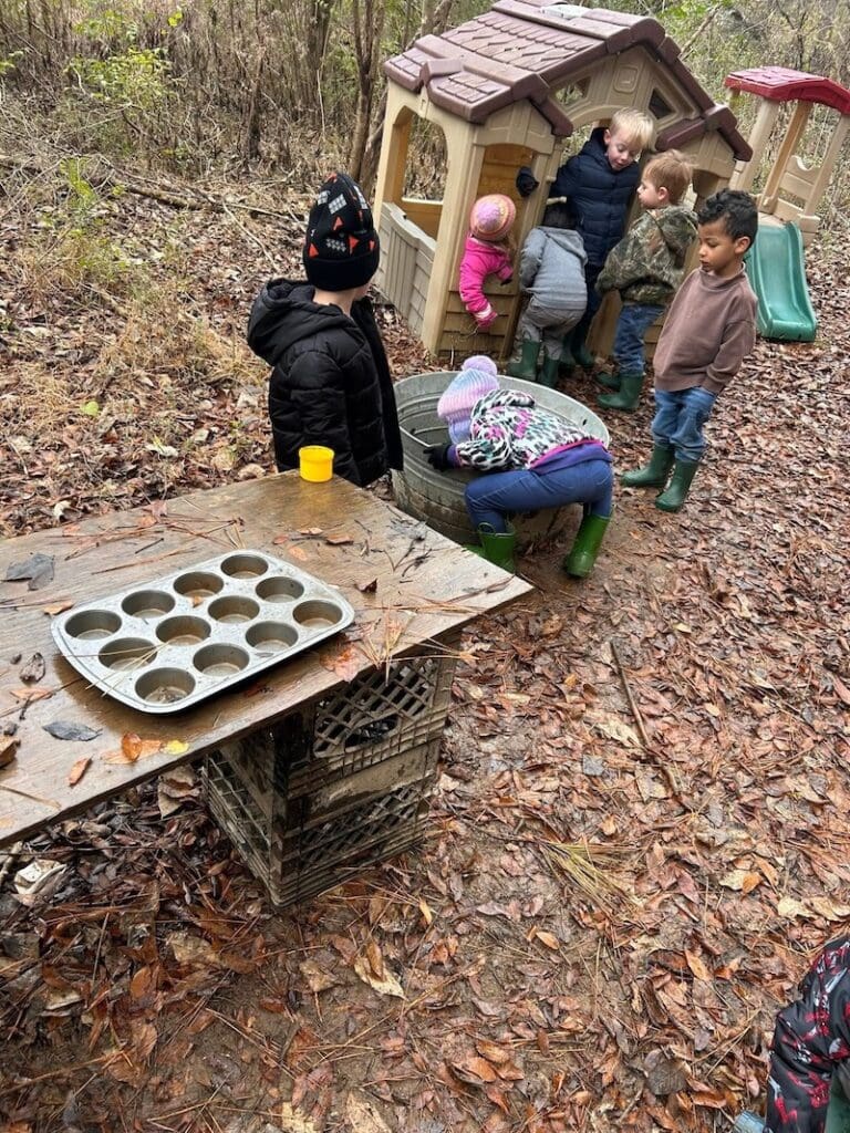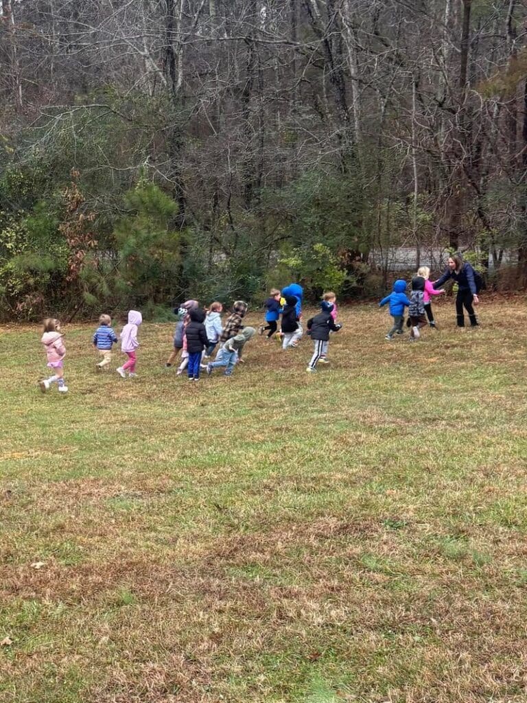 Weekly hikes on the “Loblolly Loop” and outdoor play foster a deep connection with nature.